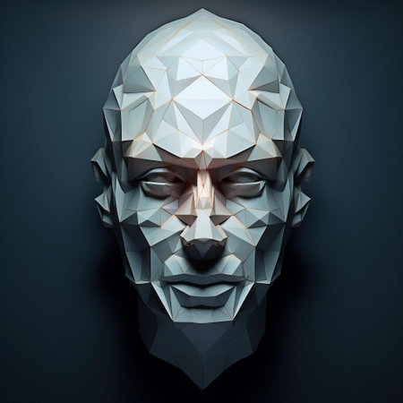 Low-poly bust, distinguished man, formal suit, minimalist studio, modern art