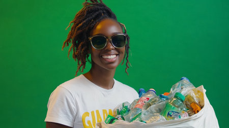 A dedicated woman volunteer carefully sorts waste for recycling during a community cleanup event, promoting environmental responsibility.