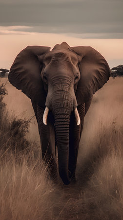 Magnificent elephant roaming freely in its natural habitat in the pristine wilderness