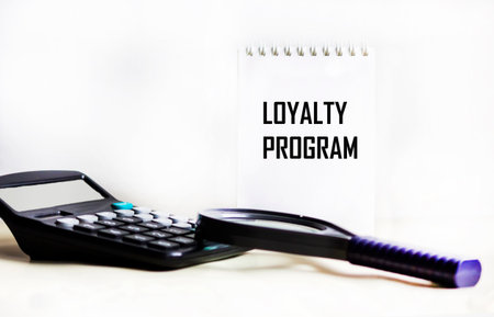 The text of the loyalty program on a notepad, on the background of a white table. The business concept of the loyalty program.