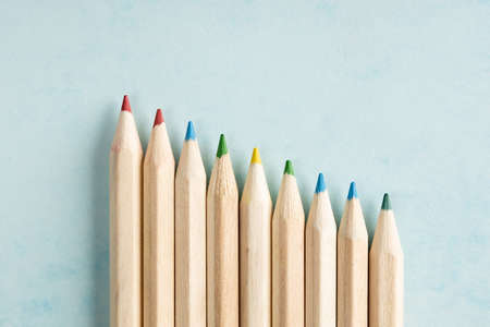 colorful pencils on the blue table background