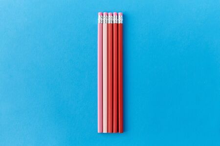 Colorful pencils on a pink background. Close-up.