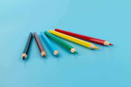 colorful pencils on the blue table background