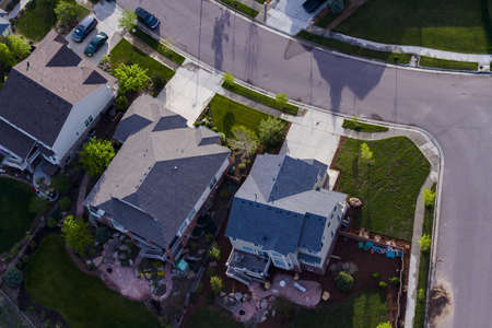 Aerial view of a residential neighborhood in the United States of America