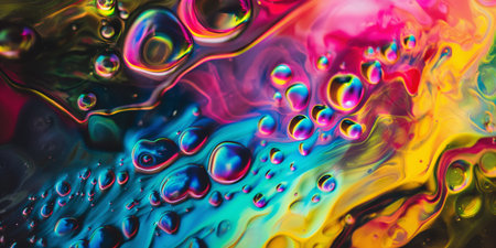 Vibrant Abstract Liquid Art with Colorful Surreal Bubbles and Fluid Patterns.