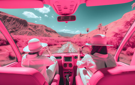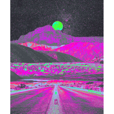 psychedelic road and mountains, in the style of neo-pop