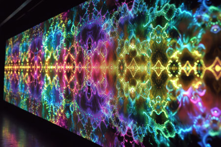 A captivating tunnel radiates vibrant hues, immersing participants in a psychedelic experience. The artwork evokes a sense of movement and transcendence within a surreal atmosphere.