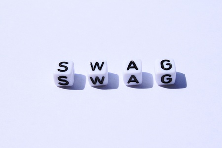 The word swap was written with wooden cubes. Close-up of spot lights and on a white table. Close up.