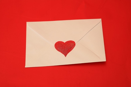 Minimalistic design of an elegant envelope with a bold red heart stamp, symbolizing romance and affection, isolated on a white backdrop.