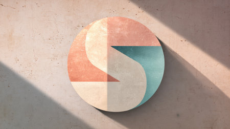 Softly colored geometric shapes create an abstract design, casting gentle shadows against a simple concrete wall, evoking a modern artistic vibe.