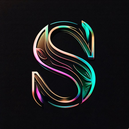 letter s, watercolor style, on black background, created with generative ai