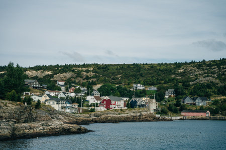 Group of new vacation homes built on the shore Bay Newfoundland, Canada. high quality photo