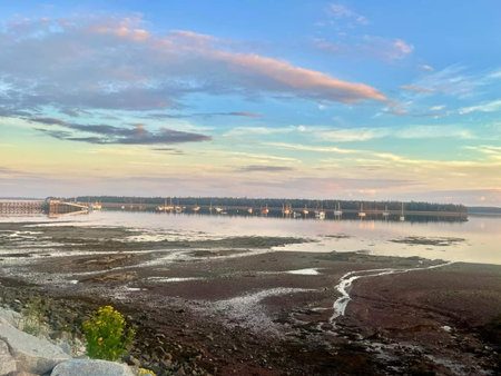 View of the harbor at low tide, in St. Martins, New Brunswick, Canada