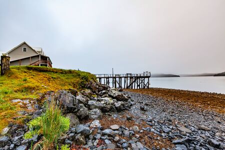 USA, Alaska State, embankment of stones, the lake, the old Wharf