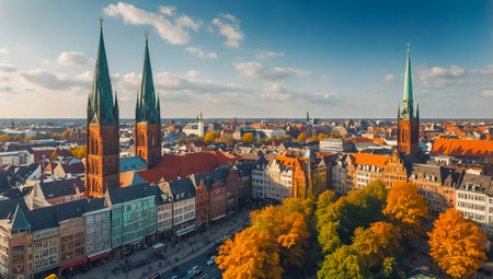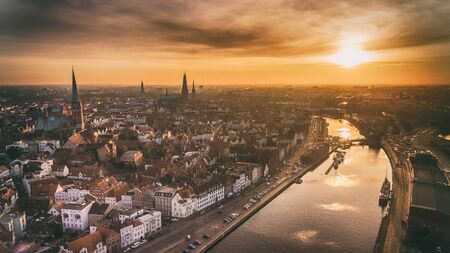 Aerial view of the Hanseatic City of Lübeck, a city in Northern Germany