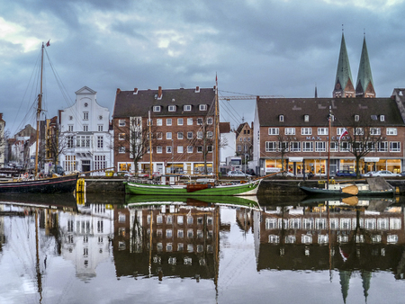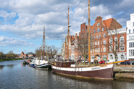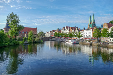 Waterside scenery at the Hanseatic City of Lübeck, a city in Northern Germany