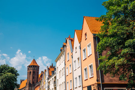 St. Nicholas Roman Catholic Church and old town street in Gdansk, Poland