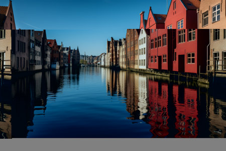 Idyllic Homes Stretched Along a Serene Canal Under a Pristine Sky: A Captivating View in 3:2 Aspect