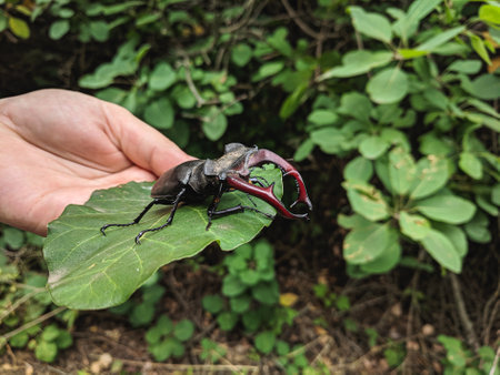 Stag beetle in the hands of a human