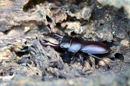 Stag beetles on tree bark in nature. Rare stag beetles.