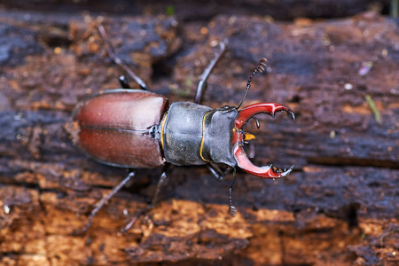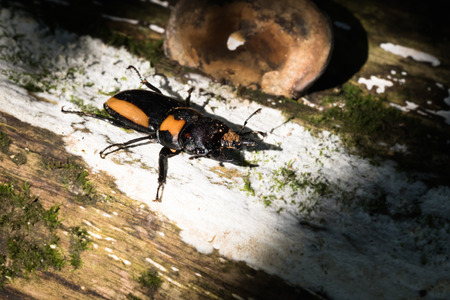 Orange Striped Stag Beetle on stump wood