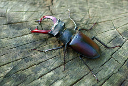 stag beetle on a stump of oak top view