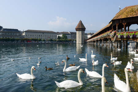 LUCERNE, SWITZERLAND - JUNE 27, 2016: Famous Chapel bridge in Lucerne in a beautiful summer day, Switzerland