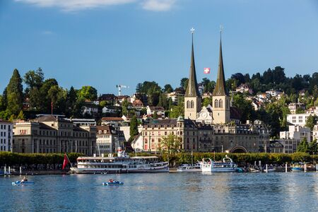 View of Lucerne with Church of St. Leodegar from lake, Switzerland