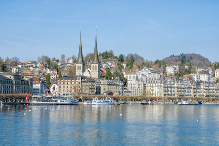 Views from the lake promenade of the old town in Lucerne. Lucerne is a famous tourist destination in Switzerland.