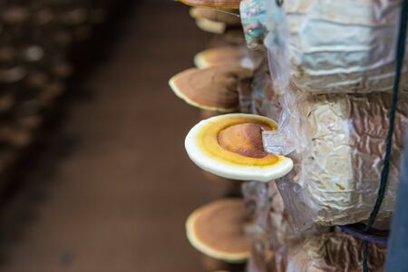 Lingzhi mushroom in the farm, Reishi mushroom, Ganoderma lucidum