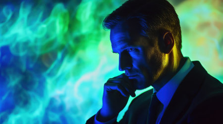 Politician thinking with colorful background lights