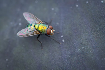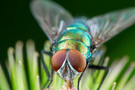 Closeup on the common green bottle fly of the genus Lucila
