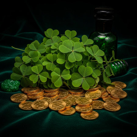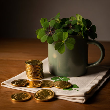 An intimate, detail-focused square composition capturing the essence of Irish luck and fortune. This