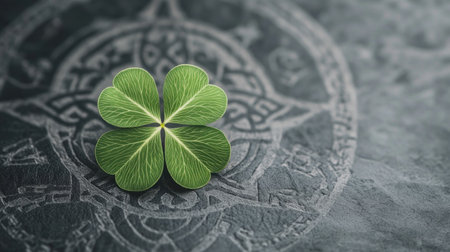 Embrace Ireland's charm with this captivating image A luminous four-leaf clover, symbol of luck, overlays intricate Celtic patterns, a beautiful tribute to Irish heritage This striking design embodies Irish culture and history, offering a unique connection to its deep-rooted symbolism Perfect for your next project AI Generative