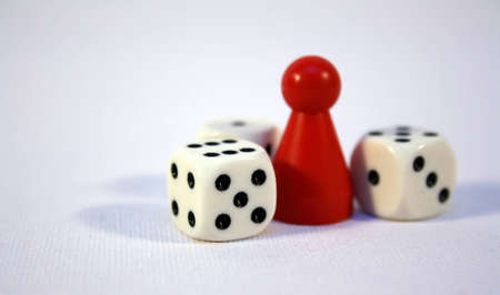 Red and White dices, Risk vs Reward conceptual shot.