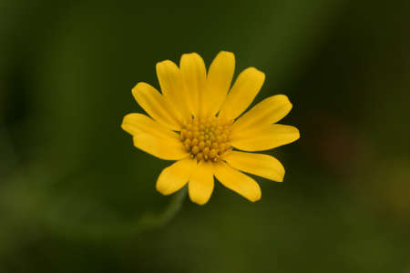 Yellow Doronicum flower Yellow Chamomile on blurred green background. Spring colors. Copy space background