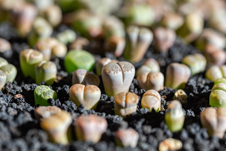 Lithops succulent plant macro close up, selective focus