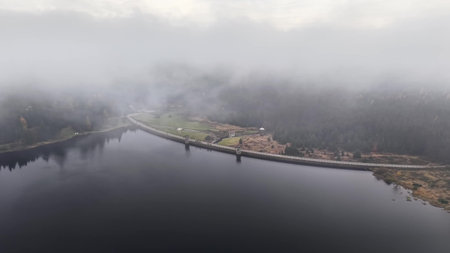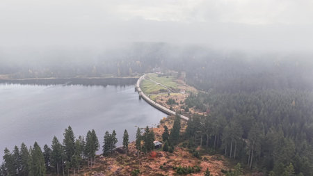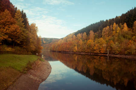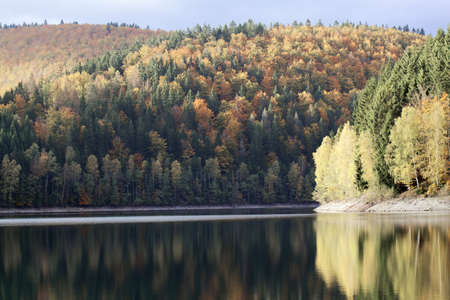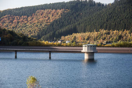 Water reservoir Okerstausee in autumn, Harz mountains, Germany