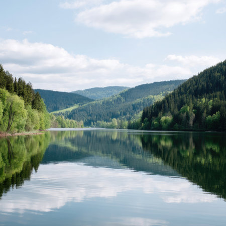 Tranquil view of Granestausee, a reservoir in Harz Mountains National Park, Germany