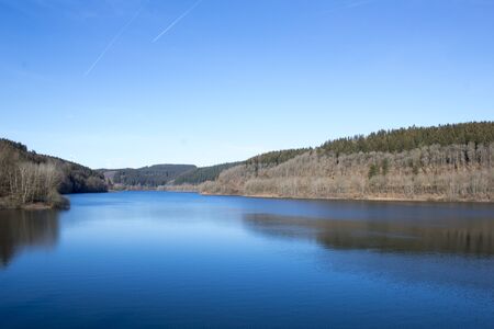 Rur Reservoir, Panoramic view of the Rur Lake in autumn, Germany