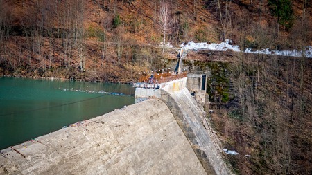 Valvestino Dam on Lake Garda in Italy. Hydroelectric power plant.