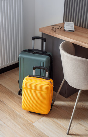 Luggage preparing for a trip or just arriving in contemporary accommodation