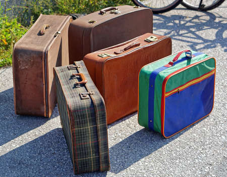old suitcase. Stack of vintage luggage suitcase. retro bags