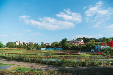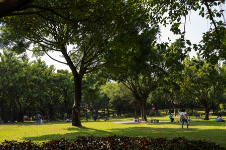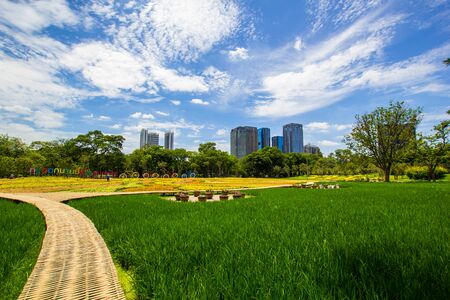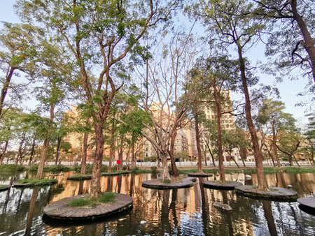 Taichung Central Park at the Shuinan Economic and Trade Area in blue sky sunny day. Former Shuinan Airport, lot of green space in here, the second largest park in Taiwan. Xitun District, Taichung City