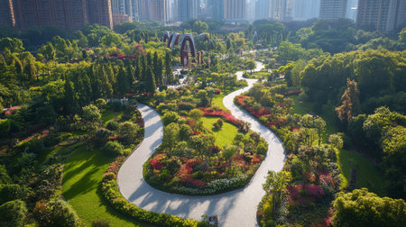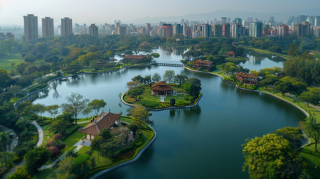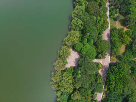 Aerial view of a beautiful city park in Shanghai, China.