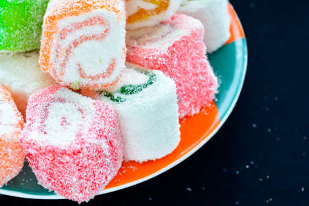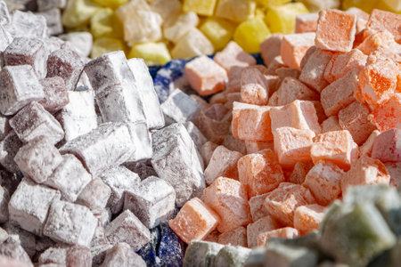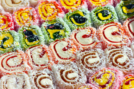 Delicious Colorful Turkish Delights. close up. creative photo.