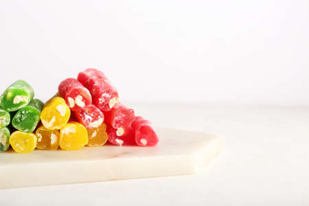 Sweets marmalade, turkish delight, bright multi-colored confectionery. Background candied colorful fruit. Colored dried fruit. Close up