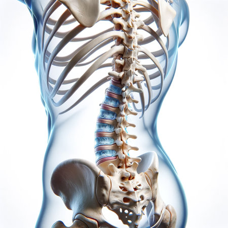 Human spine anatomy with neural connections and lumbar vertebrae.