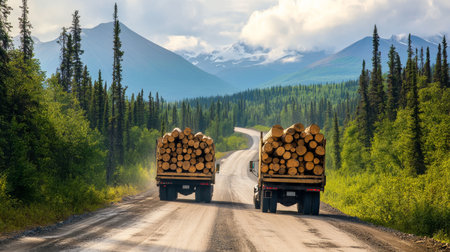 Truck carrying timber on the mountain road. 3d rendering.ai generated