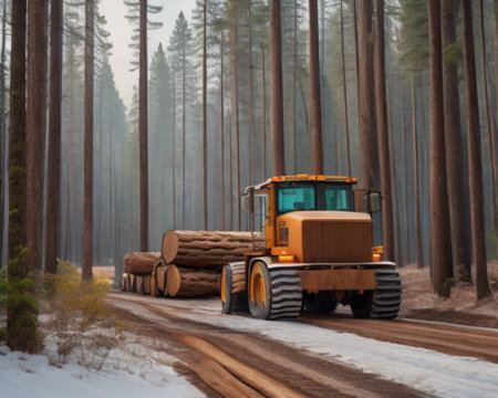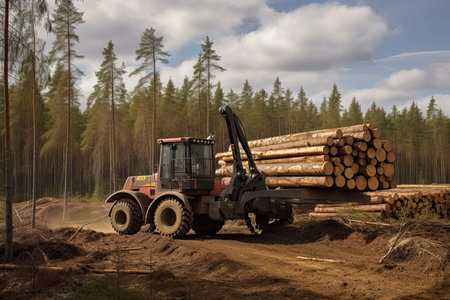 Certified sustainable forestry practices. Trees are being harvested responsibly, promoting the importance of supporting products with recognized forestry certifications.